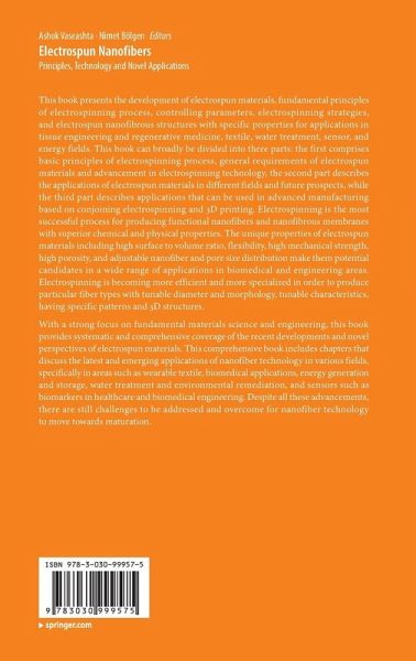 This book presents the development of electrospun materials, fundamental principles of electrospinning process, controlling parameters, electrospinning strategies, and electrospun nanofibrous structures with specific properties for applications in tissue engineering and regenerative medicine, textile, water treatment, sensor, and energy fields. This book can broadly be divided into three parts: the first comprises basic principles of electrospinning process, general requirements of electrospun materials and advancement in electrospinning technology, the second part describes the applications of electrospun materials in different fields and future prospects, while the third part describes applications that can be used in advanced manufacturing based on conjoining electrospinning and 3D printing. Electrospinning is the most successful process for producing functional nanofibers and nanofibrous membranes with superior chemical and physical properties. The unique properties of electrospun materials including high surface to volume ratio, flexibility, high mechanical strength, high porosity, and adjustable nanofiber and pore size distribution make them potential candidates in a wide range of applications in biomedical and engineering areas. Electrospinning is becoming more efficient and more specialized in order to produce particular fiber types with tunable diameter and morphology, tunable characteristics, having specific patterns and 3D structures.