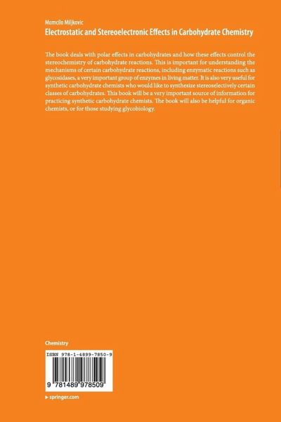 The book deals with polar effects in carbohydrates and how these effects control the stereochemistry of carbohydrate reactions. This is important for understanding the mechanisms of certain carbohydrate reactions, including enzymatic reactions such as glycosidases, a very important group of enzymes in living matter. It is also very useful for synthetic carbohydrate chemists who would like to synthesize stereoselectively certain classes of carbohydrates. This book will be a very important source of information for practicing synthetic carbohydrate chemists. The book will also be helpful for organic chemists, or for those studying glycobiology.