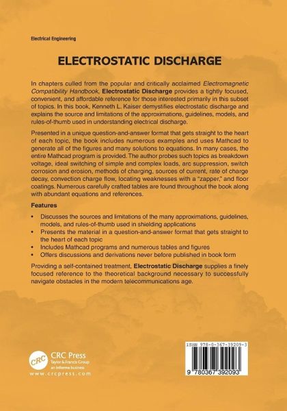 In chapters culled from the popular and critically acclaimed Electromagnetic Compatibility Handbook, Electrostatic Discharge provides a tightly focused, convenient, and affordable reference for those interested primarily in this subset of topics. Author Kenneth L. Kaiser demystifies electrostatic discharge and explains the source and limitations of the approximations, guidelines, models, and rules-of-thumb used in this field. The material is presented in a unique question-and-answer format that gets straight to the heart of each topic. The book includes numerous examples and uses Mathcad to generate all of the figures and many solutions to equations. In many cases, the entire Mathcad program is provided.