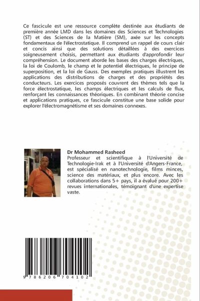 Ce fascicule est une ressource complète destinée aux étudiants de première année LMD dans les domaines des Sciences et Technologies (ST) et des Sciences de la Matière (SM), axée sur les concepts fondamentaux de l'électrostatique. Il comprend un rappel de cours clair et concis ainsi que des solutions détaillées à des exercices soigneusement choisis, permettant aux étudiants d'approfondir leur compréhension. Le document aborde les bases des charges électriques, la loi de Coulomb, le champ et le potentiel électriques, le principe de superposition, et la loi de Gauss. Des exemples pratiques illustrent les applications des distributions de charges et des propriétés des conducteurs. Les exercices proposés couvrent des thèmes tels que la force électrostatique, les champs électriques et les calculs de flux, renforçant les connaissances théoriques. En combinant théorie concise et applications pratiques, ce fascicule constitue une base solide pour explorer l'électromagnétisme et ses domaines connexes.