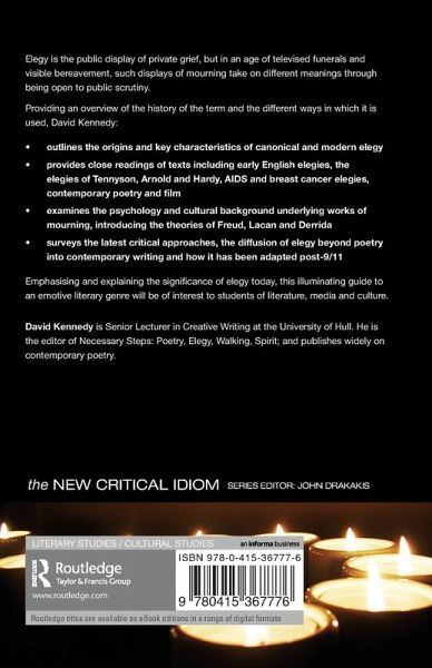 In a media age of televised funerals and visible bereavement, elegies are increasingly significant and open to public scrutiny. David Kennedy provides an overview of the history of the term, outlining its characteristics, cultural background and theoretical reception in the twentieth-century.