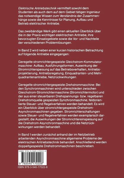 Die elektrische Antriebstechnik, iiber deren gegenwiirtigen Stand in diesem zweibiindi gen Werk berichtet wird, befindet sich in einer stiirmischen Entwicklung. Wiihrend die Anpassung der elektrischen Maschinen an die Anforderungen der modernen Antriebs technik in evolutionaren Bahnen veriauft, werden die Fortschritte auf den Gebieten "Umformung elektrischer Energie (Leistungselektronik)" sowie "Steuer-, Regel-, MeB-und Uberwachungstechnik" durch Innovationen bei den elektrischen Bauele men ten gepriigt. Technische Fortschritte ermoglichen immer wieder neue, bessere Losungen fUr die an ein Antriebssystem gestellten Forderungen beziiglich Regeldyna mik, Pendelmomenten, Wirkungsgrad, Netzriickwirkungen, Geriiuschabstrahlung und Betriebssicherheit. 1m voriiegenden Band 2 werden geregelte elektrische Antriebe behandelt. Zuniichst wird der heute am weitesten verbreitete geregelte elektrische Antrieb, die stromrichter gespeiste Gleichstrom-Kommutatormaschine, eingehend beschrieben. Es wird gezeigt, daB dieser Antrieb neben vielen Vorteilen einen groBen Nachteil hat, den mechani schen Kommutator; dieser bedarf einerseits der Wartung, andererseits bestimmt er die Grenzleistung in Abhiingigkeit von der Drehzahl. In den letzten fiinfundzwanzig lahren wurden vielfiiltige Antriebslosungen in Form von geregelten stromrichterge speisten Drehstrommaschinen erarbeitet, mit denen die durch den mechanischen Kommutator gegebenen Einschriinkungen iiberwunden werden konnten. Ich habe versucht, die vielen he ute auf dem Markt angebotenen Antriebsvarianten, die sich sowohl hinsichtlich der Art der eingesetzten elektrischen Maschinen als auch der verwendeten Strom richter und der angewandten Steuer-und Regelverfahren unter scheiden, systematisch zu gliedern. An ausgesuchten Beispielen werden Funktion und Wirkungsweise dieser Antriebe eingehend erkliirt. Dabei habe ich mich bemiiht, den Stoff moglichst anschaulich darzustellen.