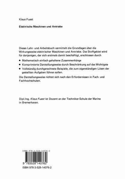 Das Buch vermittelt das Grundwissen tiber die Wirkungsweise elektrischer Maschinen und Antriebe. Rezepte fUr die Auslegung von Maschinen werden nicht gegeben, denn Berech nung und Konstruktion k6nnen nur durch praktische Erfahrung erlernt werden. Der Stoffumfang ist abgestimmt auf das Niveau von Fach- und Fachhochschulen. Er soll dem Studierenden der Elektrotechnik oder des Maschinenbaus ein Wissen dartiber ver mitteln, was in den Maschinen vor sich geht und wie sie sich im Betrieb verhalten. FUr die daflir zur Verfligung stehende Zeit verlangt dies allein bereits viel Arbeitsaufwand, so d~ eine ernsthafte Beschliftigung mit zusatzlicher Literatur flir den Studierenden kaum m6glich ist. Deshalb wird auf Literaturhinweise verzichtet! Die mathematischen Formulierungen werden bewuBt auf einfache Zusammenhiinge reduziert; Differential- und Integralrechnung werden nicht verwendet. Klaus Fuest Bremerhaven Einfuhrung AIle elektrischen Maschinen, ob Motoren, Generatoren oder auch Transformatoren, kann man unter dem Sammelbegriff elektro-magnetische Energiewandler zusammen fassen. AIs Motoren dienen sie der Umwandlung von elektrischer in mechanische Energie, indem sie dem Netz elektrische Energie (Spannung X Strom X Zeit) entziehen und an ihrer Welle mechanische Energie (Drehmoment) bereitstellen, die dann zur Fortbewegung von Fahr zeugen oder zum Betreiben von Werkzeugmaschinen genutzt wird. Bei den Generatoren verHiuft der Vorgang umgekehrt; sie nehmen mechanische Energie auf, d. h. sie mussen angetrieben werden, - z. B. durch Dieselmotor, Dampf-, Wind- oder Wasserturbine -, und wandeln diese Energie urn in elektrische Energie, die in Form von Spannung und Strom zur Verfligung steht, solange der Generator angetrieben wird.