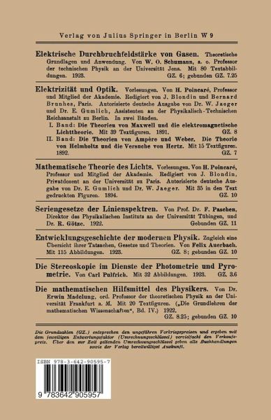 I. Der Elektronenstrom im Hochvakuum.- Hochvakuumröhre mit Glühkathode. Einseitigkeit des Stroms.- Elektronen.- Hochvakuum-Gleichrichter.- Das Elektronenrelais (die Elektronenröhre).- II. Ionenströme in Gasen.- Der elektrodenlose Ringstrom.- Die Konstitution des Atoms.- Die Bestandteile eines ionisierten Gases.- Die Stoßionisierung.- Das Einsetzen des Ionenstroms.- Die Ionisierungs-Feldstärke.- Ionenstrom in Röhren mit Elektroden.- Positive Lichtsäule. Moore-Licht.- Negatives Glimmlicht. Glimmlichtlampe.- Die "Korona".- Die elektrische Entstaubung.- III. Der Lichtbogen.- Die elektrischen Vorgänge im Lichtbogen.- Versuche mit Kohlelichtbogen.- Das Leuchten der Bogenlampen.- Der Vakuumlichtbogen.- Die Quecksilberdampflampe.- Der Quecksilberdampf-Gleichrichter.