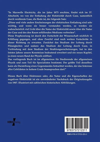 Dieses Buch über Elektronen oder, die Natur und die Eigenschaften der negativen Elektrizität ist ein unveränderter Nachdruck der Originalausgabe von 1907. Illustriert mit zahlreichen historischen Abbildungen.