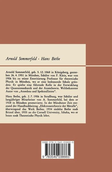I. Die Hypothese der freien Elektronen.- 1. Historische Einleitung.- 2. Pauliverbot, Elektronengas bei tiefen Temperaturen.- 3. Fermische Verteilung, Entartungskriterium.- 4. Richardsoneffekt.- 5. Elektrische und thermische Leitfähigkeit.- 6. Thermoelektrizität, Thomson- und Peltiereffekt.- 7. Halleffekt, magnetische Widerstandsänderung.- II. Elektronen im periodischen Potentialfeld.- A. Eigenwerte und Eigenfunktionen.- B. Statistik.- C. Effekte, die nicht von der Wechselwirkung mit den Gitterwellen abhängen.- D. Elektrische Leitfähigkeit. Wechselwirkung der Elektronen mit Gitterschwingungen.- E. Kompliziertere Effekte.- III. Das Metall als Ganzes.- A. Berechnung der Eigenwerte.- B. Ferromagnetismus.- C. Kohäsionskräfte.- Verzeichnis der verwendeten Bezeichnungen.
