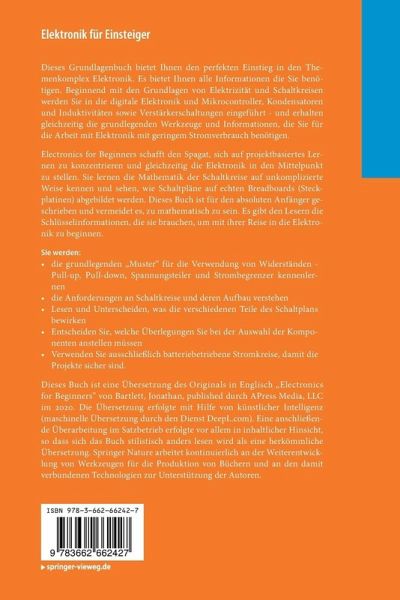 Electronics for Beginners schafft den Spagat, sich auf projektbasiertes Lernen zu konzentrieren und gleichzeitig die Elektronik in den Mittelpunkt zu stellen. Sie lernen die Mathematik der Schaltkreise auf unkomplizierte Weise kennen und sehen, wie Schaltpläne auf echten Breadboards abgebildet werden. Dieses Buch ist für den absoluten Anfänger geschrieben und vermeidet es, zu mathematisch zu sein. Es gibt den Lesern die Schlüsselinformationen, die sie brauchen, um mit ihrer Reise in die Elektronik zu beginnen.