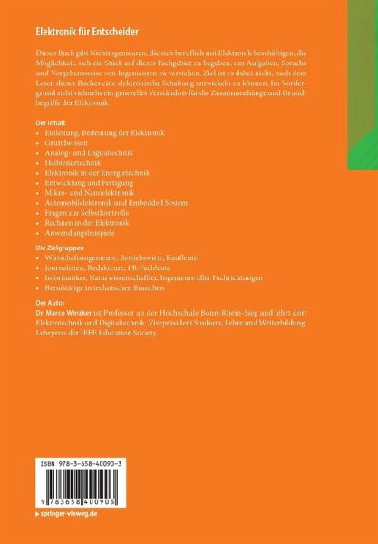 Dieses Buch gibt Nichtingenieuren, die sich beruflich mit Elektronik beschäftigen, die Möglichkeit, sich ein Stück auf dieses Fachgebiet zu begeben, um Aufgaben, Sprache und Vorgehensweise von Ingenieuren zu verstehen. Ziel ist es dabei nicht, nach dem Lesen dieses Buches eine elektronische Schaltung entwickeln zu können. Im Vordergrund steht vielmehr ein generelles Verständnis für die Zusammenhänge und Grundbegriffe der Elektronik.