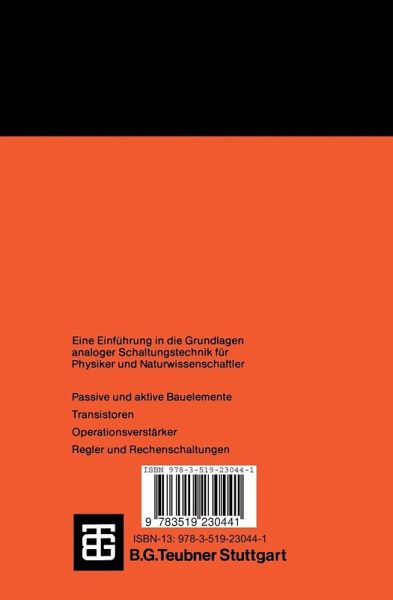 1 Passive Bauelemente.- 1.1 Lineare Bauelemente.- 1.2 Nichtlineare passive Bauelemente.- 2 Aktive Bauelemente.- 2.1 Der bipolare Transistor.- 2.2 Transistor-Grundschaltungen.- 3 Schaltungen mit Operationsverstärkern (OPV).- 3.1 Prinzip des Differenzverstärkers.- 3.2 Mehrstufiger Operationsverstärker.- 3.3 Gegenkopplung.- 3.4 Bandbreite und Kompensation.- 4 Anwendungen.- 4.1 Spannungsfolger 19.- 4.2 Spitzenspannungsdetektor.- 4.3 Stretcher (Dehner).- 4.4 Sample-Hold-Schaltung.- 4.5 Invertierende Verstärker.- 4.6 Summierer.- 4.7 Differenzverstärker.- 4.8 Meßverstärker.- 4.9 Differenzverstärker als elektronischer Schalter und Inverter.- 4.10 Strom-Spannungswandler (I/U-Wandler).- 4.11 Gleichrichter-Schaltungen.- 4.12 Differentiator.- 4.13 Integrator.- 4.14 Anwendung eines Integrators.- 4.15 Komparator, Diskriminator.- 4.16 Mittelwertbildung.- 5 Regler und Rechenschaltungen.- 5.1 Regler.- 5.2 Frequenzgang, Proportional-Regler.- 5.3 Proportional-Integral-Regler.- 5.4 Proportional-Integral-Differential-Regler.- 5.5 Rechenschaltungen.