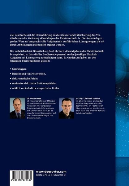 Ziel des Buches ist die Heranführung an die Klausur und Erleichterung des Verständnisses der Vorlesung »Grundlagen der Elektrotechnik 1«. Die Autoren legen großen Wert auf anspruchsvolle Aufgaben mit ausführlichen Lösungswegen, die oft durch Abbildungen anschaulich ergänzt werden.