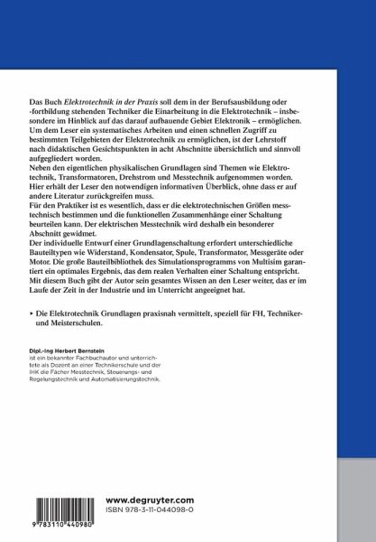 Das Buch behandelt anhand praktischer Beispiele lineare und nichtlineare Gleichstromkreise, Widerstände, Kondensatoren und Spulen. Die Grundbegriffe der Wechselstromtechnik werden simuliert, die Leistungen im Wechselstromkreis und in Schwingkreisen werden mit Messgeräten untersucht. Den Abschluss bilden Mehrphasensysteme: Drehstrom und nicht sinusförmige periodische Vorgänge.