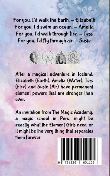 For you, I'd walk the Earth. For you, I'd swim an ocean. For you, I'd walk through fire. For you, I'd fly through air. Elizabeth (Earth), Amelia (Water), Tess (Fire) and Susie (Air) are four loyal friends with the powers of the elements. When they team up to face magical challenges set by The Magic Academy in Peru, they must use their magic wisely to pass ... and survive.