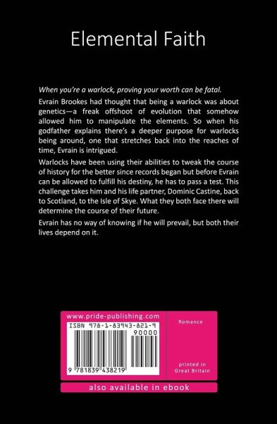 When you’re a warlock, proving your worth can be fatal. Evrain Brookes had thought that being a warlock was about genetics—a freak offshoot of evolution that somehow allowed him to manipulate the elements. So when his godfather explains there’s a deeper purpose for warlocks being around, one that stretches back into the reaches of time, Evrain is intrigued. Warlocks have been using their abilities to tweak the course of history for the better since records began but before Evrain can be allowed to fulfill his destiny, he has to pass a test. This challenge takes him and his life partner, Dominic Castine, back to Scotland, to the Isle of Skye. What they both face there will determine the course of their future. Evrain has no way of knowing if he will prevail, but both their lives depend on it.