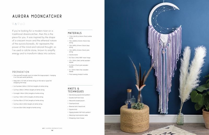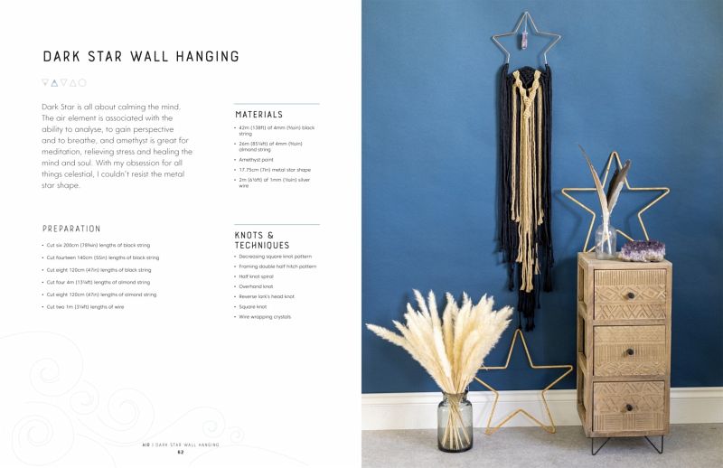 Create beautiful macrame projects that invoke the sacred elements of Earth, Air, Water, Fire and Spirit. The idea of classical elements' is common to many belief systems including Ancient Greek, Egyptian, Babylonian, Hinduism and Buddhism, as well as Chinese and Japanese philosophies. The five elements of the Pagan religion Wicca represent the five points of the pentagram, a powerful sacred symbol. No matter what your beliefs, paying attention to the forces of nature can bring a greater sense of spirituality and calm to your life, which is equally true of the craft of macrame, which like all handicrafts has proven benefits for wellbeing.This unique and beautiful book celebrates each of the Earth's sacred elements with projects that even beginners to macrame can tackle with ease. In nature, each element has its own specific properties, colours and stones associated with it, which these projects incorporate to dramatic effect. The 20 projects include mooncatchers, wall hangings, home accessories and jewellery, which all draw their inspiration from nature and the elements. Many of the projects have crystals incorporated into them, for the good vibrations and healing energy they bring. You'll also learn how to dip-dye macrame for wonderful ombre effects and work with a variety of different coloured cords to bring beauty and interest to your pieces.Make a tree of life hoop to connect with the earth, a mooncatcher to protect you during sleep, a hanging fruit bowl to feed and nourish you, and a plant hanger to purify your air. Make a necklace to bring out your inner goddess, a crystal suncatcher to capture your fire, or some coasters for your altar candles to sit on. With 20 projects to choose from you will find a whole host of ways to enjoy macrame in a new intentional, spiritual light.Author Rebecca Millar is best known as the creator of Vanir Creations, who has amassed a huge online following for her dreamy macrame hoops and moon catchers. Entirely self-taught, Rebecca now generously shares her secrets in this book, which demystifies the craft with simple explanations of the knots and techniques required.