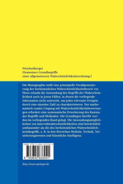 Die Monographie stellt eine prinzipielle Verallgemeinerung der herkömmlichen Wahrscheinlichkeitstheorie vor. Diese erlaubt die Anwendung des Begriffs der Wahrscheinlichkeit auch in jenen Fällen, in denen die vorliegende Information nicht ausreicht, um jedes relevante Ereignis durch eine einzelne Zahl zu charakterisieren. Der mathematisch exakte Umgang mit Wahrscheinlichkeitsbewertungen erfordert eine systematische Erweiterung des Kanons der Begriffe und Methoden. Die Grundlagen hierfür werden im vorliegenden Band gelegt. Die Anwendungsmöglichkeiten von Intervallwahrscheinlichkeit sind beträchtlich umfassender als die des herkömmlichen Wahrscheinlichkeitsbegriffs, z.B. in den Bereichen Medizin, Technik, Versicherungswesen und künstliche Intelligenz.