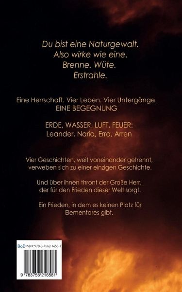 Dank des Großen Herrn können Menschen ohne Furcht leben, da die Elementares in ihre Schranken gewiesen wurden. Vier Geschichten werden in dieser Zeit des Friedens erzählt, die sich allmählich näher kommen: Leander, ein Fischerjunge, der zusammen mit seinem Freund Tomas Gefahr läuft, von den Wachen der Regierung gefunden zu werden. Naria, eine Wasserelementarin, die fern der Regierung auf einer entlegenen Insel im Norden lebt. Erra, eine Luftelementarin, die auf verschiedene Gifte getestet wird und alles überlebt. Arren, ein Feuerelementar, der sich seiner Vergangenheit stellen muss. Das Schicksal aller vier wird vom mächtigsten Mann der Welt entschieden: vom Großen Herrn selbst.