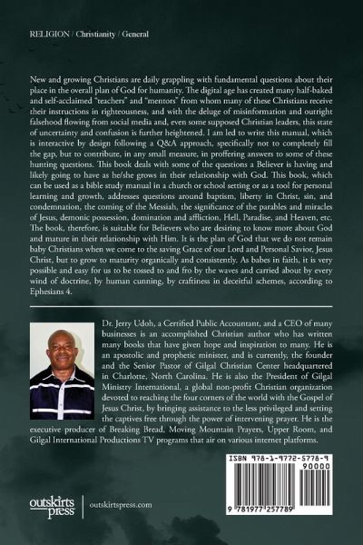 New and growing Christians are daily grappling with fundamental questions about their place in the overall plan of God for humanity. The digital age has created many half-baked and self-acclaimed "teachers" and "mentors" from whom many of these Christians receive their instructions in righteousness, and with the deluge of misinformation and outright falsehood flowing from social media and, even some supposed Christian leaders, this state of uncertainty and confusion is further heightened. I am led to write this manual, which is interactive by design following a Q&A approach, specifically not to completely fill the gap, but to contribute, in any small measure, in proffering answers to some of these hunting questions. This book deals with some of the questions a Believer is having and likely going to have as he/she grows in their relationship with God. This book, which can be used as a bible study manual in a church or school setting or as a tool for personal learning and growth, addresses questions around baptism, liberty in Christ, sin, and condemnation, the coming of the Messiah, the significance of the parables and miracles of Jesus, demonic possession, domination and affliction, Hell, Paradise, and Heaven, etc. The book, therefore, is suitable for Believers who are desiring to know more about God and mature in their relationship with Him. It is the plan of God that we do not remain baby Christians when we come to the saving Grace of our Lord and Personal Savior, Jesus Christ, but to grow to maturity organically and consistently. As babes in faith, it is very possible and easy for us to be tossed to and fro by the waves and carried about by every wind of doctrine, by human cunning, by craftiness in deceitful schemes, according to Ephesians 4.