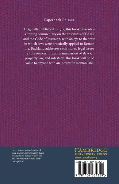 Originally published in 1912, this book presents a running commentary on the Institutes of Gaius and the Code of Justinian, with an eye to the ways in which laws were practically applied to Roman life. Buckland addresses such thorny legal issues as the ownership and manumission of slaves, property law, and intestacy.