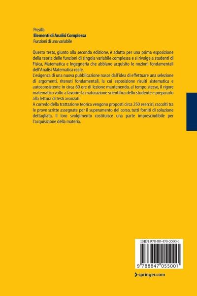 "It gives an introduction to the theory of functions of one complex variable. ... The text is self-contained ... and each chapter is complemented by several exercises, each of them with a detailed solution. It is therefore well suited for undergraduate courses of various kind, in particular for Physics, Mathematics and Engineering students." (Andrea Spiro, zbMATH, Vol. 1304, 2015)