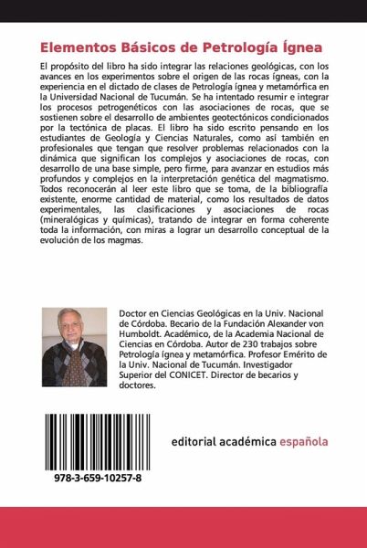 El propósito del libro ha sido integrar las relaciones geológicas, con los avances en los experimentos sobre el origen de las rocas ígneas, con la experiencia en el dictado de clases de Petrología ígnea y metamórfica en la Universidad Nacional de Tucumán. Se ha intentado resumir e integrar los procesos petrogenéticos con las asociaciones de rocas, que se sostienen sobre el desarrollo de ambientes geotectónicos condicionados por la tectónica de placas. El libro ha sido escrito pensando en los estudiantes de Geología y Ciencias Naturales, como así también en profesionales que tengan que resolver problemas relacionados con la dinámica que significan los complejos y asociaciones de rocas, con desarrollo de una base simple, pero firme, para avanzar en estudios más profundos y complejos en la interpretación genética del magmatismo. Todos reconocerán al leer este libro que se toma, de la bibliografía existente, enorme cantidad de material, como los resultados de datos experimentales, las clasificaciones y asociaciones de rocas (mineralógicas y químicas), tratando de integrar en forma coherente toda la información, con miras a lograr un desarrollo conceptual de la evolución de los magmas.