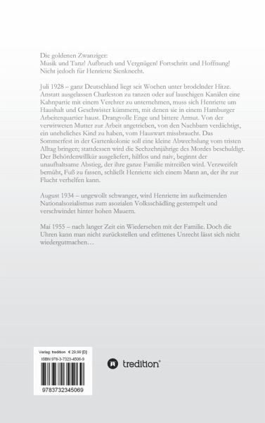 Anstatt ausgelassen Charleston zu tanzen oder auf lauschigen Kanälen eine Kahnpartie mit einem Verehrer zu unternehmen, muss sie sich um Haushalt und Geschwister kümmern, mit denen sie in einem Hamburger Arbeiterquartier haust. Drangvolle Enge und bittere Armut. Von der Mutter zur Arbeit angetrieben, von den Nachbarn verdächtigt, ein uneheliches Kind zu haben, vom Hauswart missbraucht. Das Sommerfest in der Gartenkolonie soll eine kleine Abwechslung vom tristen Alltag bringen; statt-dessen wird die Sechzehnjährige des Mordes beschuldigt. Der Behördenwillkür ausgeliefert, hilflos und naiv, beginnt der unaufhaltsame Abstieg, der ihre ganze Familie mitreißen wird. Verzweifelt bemüht, Fuß zu fassen, schließt Henriette sich einem Mann an, der ihr zur Flucht verhelfen kann.