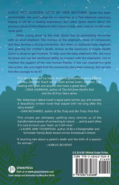 For fans of Sara Pennypacker's Pax and Ali Benjamin's The Thing About Jellyfish, Elephant Touch is a contemporary middle grade novel about overcoming grief that will touch the hearts of its readers. Since the sudden loss of her mother, Quinn has been inconsolable. Her aunt brings her to volunteer at a Thai elephant sanctuary, hoping it will be a healing experience--but when Quinn learns about the previous abuse of the elephants she's there to help, she's overcome with even more grief. While crying alone by the river one day, Quinn has a magical encounter with an adult elephant. She marvels at the elephant's show of compassion, and they develop a strong connection. But when an orphaned baby elephant, also grieving her mother's death, arrives at the sanctuary in fragile health, Quinn is afraid to get involved. To help save the baby elephant's life, she must be courageous and use her newfound ability to connect with the elephants--not to mention accept the support of her new human friends. If she can channel her grief into action, she just might find the community and support she's been missing. But can she find the courage to do it?