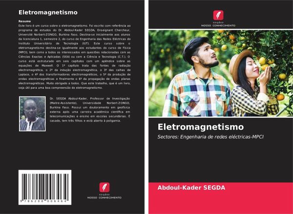 ResumoEste livro é um curso sobre o eletromagnetismo. Foi escrito com referência ao programa de estudos do Dr. Abdoul-Kader SEGDA, Enseignant Chercheur, Université Norbert-ZONGO, Burkina Faso. Destina-se inicialmente aos alunos da licenciatura 1, semestre 2, do curso de Engenharia das Redes Eléctricas do Instituto Universitário de Tecnologia (IUT). Este curso sobre o eletromagnetismo destina-se igualmente aos estudantes do curso de Física (MPCI), bem como a todos os interessados em questões relacionadas com as Ciências Exactas e Aplicadas (SEA) ou com a Ciência e Tecnologia (C.T.). O curso está estruturado em seis capítulos com um apêndice sobre as equações de Maxwell. O 1º capítulo trata das fontes de radiação electromagnética, o 2º da indução electromagnética, o 3º das calhas de Laplace, o 4º dos transformadores electromagnéticos, o 5º da produção de ondas electromagnéticas e finalmente o 6º da propagação de ondas planas electromagnéticas. Muito obrigado a todos. Que este trabalho, que é um livro, seja útil para uma boa compreensão do eletromagnetismo.
