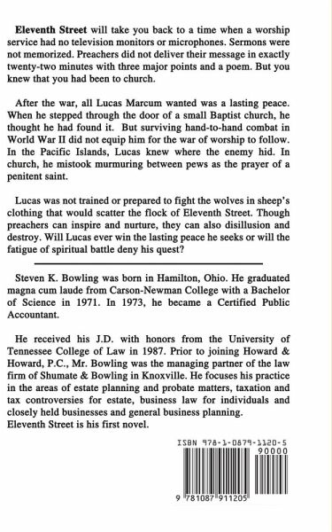 On Sunday morning, church services are broadcast on almost every TV channel in America. They are either presented as a live performance or in a carefully edited pre-recorded format. If you miss the television version, mega churches stream their programs on the internet. Eleventh Street will take you back to a time when a worship service had no television monitors in the lobby or microphones on stage. Sermons were not memorized and preachers did not deliver their message in exactly twenty-two minutes, timing their message to accommodate production guidelines. Preachers did not wear expensive suits or dress down in stylish pre-washed jeans and sandals. It was a time when the "greatest generation", as Tom Brokaw once called them, began to recover from a worldwide war; to begin their life anew. At Eleventh Street, the men who sat attentively in their pew had fought many battles, both abroad with weapons and at home with the tools of their trade. Wives and sweethearts had waited and prayed for them during the war. But now, they were reunited and sitting together in church. The congregation worshiped in the only way they knew, joyfully and with hope. Without a television audience to observe their every move, they rejoiced and sometimes shouted. The service may have lasted longer than twenty-two minutes, but they knew they had been to church. After the war, all Lucas Marcum wanted was peace, a genuine and lasting peace. First, he fell in love with Maggie. A wife who restored a love of life and hope for a family. Then he reunited with a preacher from back home in Kentucky, a man everyone called "Pastor". Through all of Lucas's trials and temptations both before and after the war, Pastor never forgot him or cast him aside. It was then, the time he stepped through the door of a small Baptist church in Hamilton, Ohio, that Lucas thought he had finally found the peace he sought. It was Pastor who led him to the altar of repentance. At church, he met Shorty who became his spiritual mentor, teaching him as much of the Bible as Lucas could absorb. With Shorty as a guide, the path to peace was in view. But Lucas was soon reminded that even a good man is vulnerable to the imaginations of evil and scheming men. Surviving hand-to-hand combat in World War II did not equip Lucas for the war of worship to follow at his new-found church. In the Pacific Islands, Lucas knew where the enemy hid. In church, he mistook murmuring between pews as the prayer of a penitent saint. Lucas was not trained or prepared to fight the wolves in sheep's clothing that would scatter the flock of Eleventh Street. These wolves hunted in packs and did not kill with the first bite. Rather, they tore at the very soul of their live prey, prolonging the agony of ultimate defeat. Though preachers and their pack of followers can inspire and nurture, they can also disillusion and destroy. Eleventh Street is a story of redemption revealing a struggle for the soul. Lucas is tempted to backslide and to fight in his own strength, but is ever mindful of the lessons learned from Pastor and Shorty. Lucas seeks a lasting peace, but the fatigue of spiritual battle takes its toll.