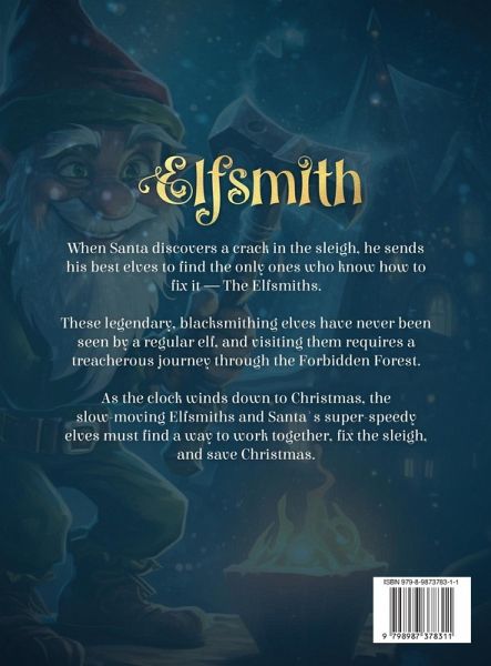 When Santa discovers a crack in the sleigh, he sends his best elves to find the only ones who know how to fix it--- The Elfsmiths. These legendary, blacksmithing elves have never been seen by a regular elf, and visiting them requires a treacherous journey through the Forbidden Forest. As the clock winds down to Christmas, the slow-moving Elfsmiths and Santa's super-speedy elves must find a way to work together, fix the sleigh, and save Christmas.