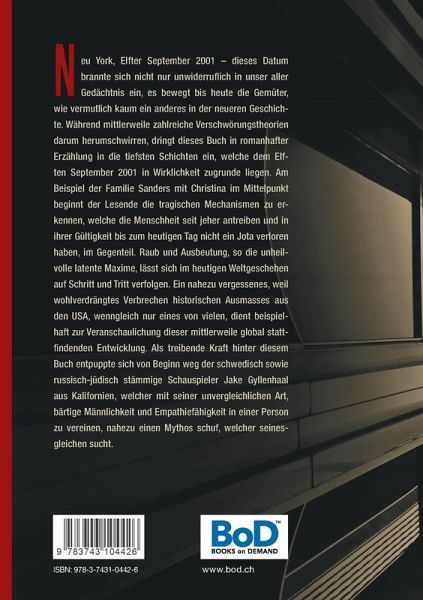 Neu York, Elfter September 2001 - dieses Datum brannte sich nicht nur unwiderruflich in unser aller Gedächtnis ein, es bewegt bis heute die Gemüter wie vermutlich kaum ein anderes in der neueren Geschichte. Während mittlerweile zahlreiche Verschwörungstheorien darum herumschwirren, dringt dieses Buch in romanhafter Erzählung in die tiefsten Schichten ein, welche dem Elften September 2001 in Wirklichkeit zugrunde liegen. Am Beispiel der Familie Sanders mit Christina im Mittelpunkt beginnt der Lesende die tragischen Mechanismen zu erkennen, welche die Menschheit seit jeher antreiben und in ihrer Gültigkeit bis zum heutigen Tag nicht ein Jota verloren haben, im Gegenteil. Raub und Ausbeutung, so die unheilvolle latente Maxime, lässt sich im heutigen Weltgeschehen auf Schritt und Tritt verfolgen. Ein nahezu vergessenes, weil wohlverdrängtes Verbrechen historischen Ausmasses aus den USA, wenngleich nur eines von vielen, dient beispielshaft zur Veranschaulichung dieser mittlerweile global stattfindenden Entwicklung. Als treibende Kraft hinter diesem Buch entpuppte sich von Beginn weg der schwedisch sowie russisch-jüdisch stämmige Schauspieler Jake Gyllenhaal aus Kalifornien, welcher mit seiner unvergleichlichen Art, bärtige Männlichkeit und Empathiefähigkeit in einer Person zu vereinen, nahezu einen Mythos schuf, welcher seinesgleichen sucht.