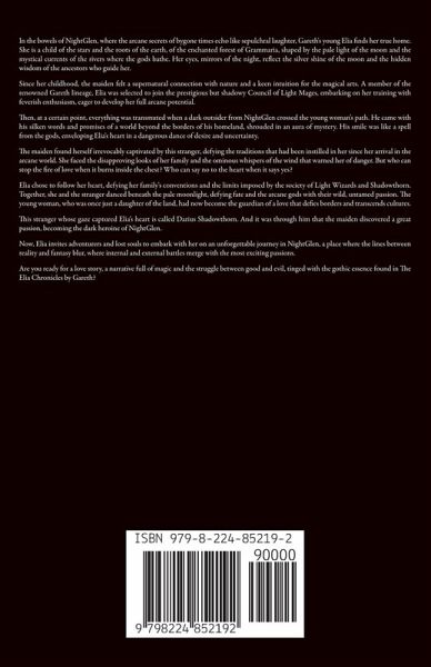 In the bowels of NightGlen, where the arcane secrets of bygone times echo like sepulchral laughter, Gareth's young Elia finds her true home. She is a child of the stars and the roots of the earth, of the enchanted forest of Grammaria, shaped by the pale light of the moon and the mystical currents of the rivers where the gods bathe. Her eyes, mirrors of the night, reflect the silver shine of the moon and the hidden wisdom of the ancestors who guide her. Since her childhood, the maiden felt a supernatural connection with nature and a keen intuition for the magical arts. A member of the renowned Gareth lineage, Elia was selected to join the prestigious but shadowy Council of Light Mages, embarking on her training with feverish enthusiasm, eager to develop her full arcane potential. Then, at a certain point, everything was transmuted when a dark outsider from NightGlen crossed the young woman's path. He came with his silken words and promises of a world beyond the borders of his homeland, shrouded in an aura of mystery. His smile was like a spell from the gods, enveloping Elia's heart in a dangerous dance of desire and uncertainty. The maiden found herself irrevocably captivated by this stranger, defying the traditions that had been instilled in her since her arrival in the arcane world. She faced the disapproving looks of her family and the ominous whispers of the wind that warned her of danger. But who can stop the fire of love when it burns inside the chest? Who can say no to the heart when it says yes? Elia chose to follow her heart, defying her family's conventions and the limits imposed by the society of Light Wizards and Shadowthorn. Together, she and the stranger danced beneath the pale moonlight, defying fate and the arcane gods with their wild, untamed passion. The young woman, who was once just a daughter of the land, had now become the guardian of a love that defies borders and transcends cultures. This stranger whose gaze captured Elia's heart is called Darius Shadowthorn. And it was through him that the maiden discovered a great passion, becoming the dark heroine of NightGlen. Now, Elia invites adventurers and lost souls to embark with her on an unforgettable journey in NightGlen, a place where the lines between reality and fantasy blur, where internal and external battles merge with the most exciting passions. Are you ready for a love story, a narrative full of magic and the struggle between good and evil, tinged with the gothic essence found in The Elia Chronicles by Gareth?