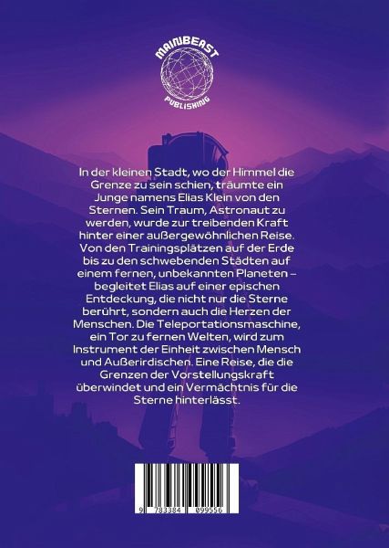 In der kleinen Stadt, wo der Himmel die Grenze zu sein schien, träumte ein Junge namens Elias Klein von den Sternen. Sein Traum, Astronaut zu werden, wurde zur treibenden Kraft hinter einer außergewöhnlichen Reise. Von den Trainingsplätzen auf der Erde bis zu den schwebenden Städten auf einem fernen, unbekannten Planeten - begleitet Elias auf einer epischen Entdeckung, die nicht nur die Sterne berührt, sondern auch die Herzen der Menschen. Die Teleportationsmaschine, ein Tor zu fernen Welten, wird zum Instrument der Einheit zwischen Mensch und Außerirdischen. Eine Reise, die die Grenzen der Vorstellungskraft überwindet und ein Vermächtnis für die Sterne hinterlässt.