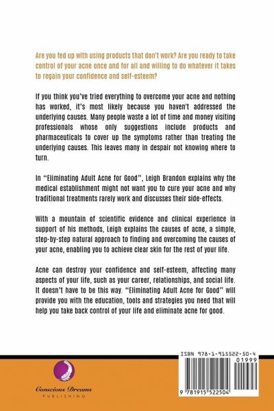 'Eliminating Adult Acne for Good' will provide you with the education, tools and strategies you need to help you take back control of your life and eliminate acne for good.