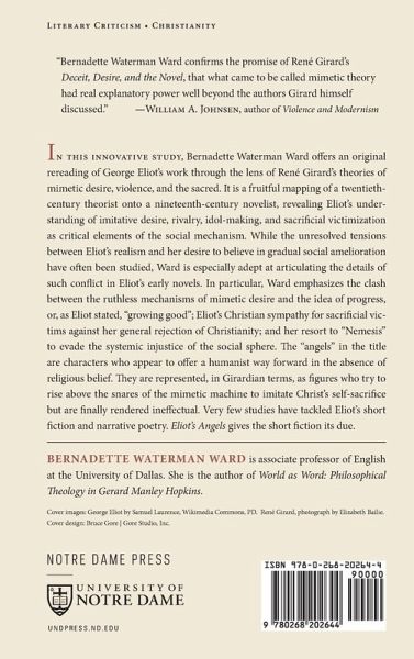 René Girard's mimetic theory opens up ways to make sense of the tension between the progressive politics of George Eliot and the conservative moralism of her narratives. In this innovative study, Bernadette Waterman Ward offers an original rereading of George Eliot's work through the lens of René Girard's theories of mimetic desire, violence, and the sacred. It is a fruitful mapping of a twentieth-century theorist onto a nineteenth-century novelist, revealing Eliot's understanding of imitative desire, rivalry, idol-making, and sacrificial victimization as critical elements of the social mechanism. While the unresolved tensions between Eliot's realism and her desire to believe in gradual social amelioration have often been studied, Ward is especially adept at articulating the details of such conflict in Eliot's early novels. In particular, Ward emphasizes the clash between the ruthless mechanisms of mimetic desire and the idea of progress, or, as Eliot stated, "growing good"; Eliot's Christian sympathy for sacrificial victims against her general rejection of Christianity; and her resort to "Nemesis" to evade the systemic injustice of the social sphere. The "angels" in the title are characters who appear to offer a humanist way forward in the absence of religious belief. They are represented, in Girardian terms, as figures who try to rise above the snares of the mimetic machine to imitate Christ's self-sacrifice but are finally rendered ineffectual. Very few studies have tackled Eliot's short fiction and narrative poetry. Eliot's Angels gives the short fiction its due, and it will appeal to scholars of mimetic and literary theory, Victorianists, and students of the novel.
