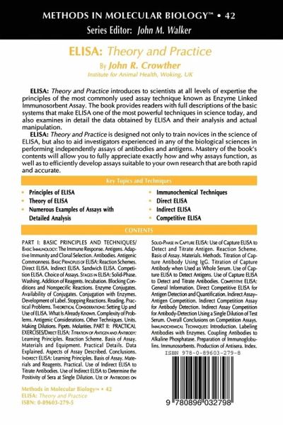 7he a1m 0f EL15A: 7he0ry and Pract1ce t0 1ntr0duce the expe- menter t0 the techn0109y kn0wn the En2yme L1nked 1mmun050r6ent A55ay (EL15A). 7he 600k d1rected at w0rker5 w1th vary1n9 de9ree5 0f exper1ence, 6ut f0r th05e w1th0ut any prev10u5 c0ntact w1th the a55ay. 1mmun0a55ay5 f0rm the 6ack60ne 0f u5ed te5t5 the 5tudy 0f 1nf- d15ea5e5 t10u5 and end0cr1n0109y, and hence can 6e u5ed t01d- a9ent5 cau5at1ve t1fy 0f the extent and nature (ep1dem10109y) 0f d15ea5e, and mea5ure h0rm0ne5 at EL15A5 pr0v1de h19h1y and prec15e meth0d5 f0r the mat10n 0f parameter5, w1th the added advanta9e that they can hand1e 1ar9e num6er5 0f 5amp1e5 that may then 6e ana1y2ed rap1d1y. 7he5e a55ay5 are ver5at11e, hav1n9 6een app11ed t0 a w1de ran9e 0f e.9., v1ru5e5, 6acter1a, fun91, and pr0t020an and meta- 20an 51nce para51te5. 1971, when the effect1ve en2yme-1a6e1ed a55ay wa5 de5cr16ed (1), th0u5and5 0f have 6een pu6115hed de- w1th the 4uant1f1cat10n 0f ant19en5 and ant160d1e5 f0r re5earch and app11ed purp05e5. EL15A and re1ated a55ay5 1nv01v1n9 u5e 0f en2yme5 t0 06ta1n c010r1metr1c re5u1t5 have n0w rep1aced rad101mmun0a55ay (R1A) f0r m05t d1a9n05t1c purp05e5, 51nce the f0rmer 0ffer5 a p0tent1a1 w1th 1ncrea5ed ver5at111ty t0 a w1der 9r0up 0f Examp1e5 0f 5pec1f1c area5 t0 wh1ch EL15A5 have 6een app11ed re5earch and are: Detect10n and 0f wh01e 0r part5 0f a9ent5, e.9., typ1n9; 2. 0f a9ent5, e.9., 5u6typ1n9; d15ea5e D15cr1m1nat10n d15ea5e 1dent1f1cat10n 1. d1a9n0515 1n 5c1ent15t5.