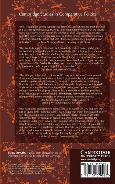 Tariq Thachil is an Assistant Professor in the Department of Political Science at Yale University, Connecticut. Thachil's doctoral dissertation received the 2010 Gabriel A. Almond Award for best dissertation in the field of comparative politics from the American Political Science Association and the 2010 Sardar Patel Award for best dissertation on modern India in the humanities, education, fine arts, or social sciences from the University of California, Los Angeles. His articles have appeared in American Political Science Review, Comparative Politics, Contemporary South Asia, and World Politics.