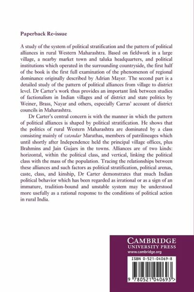 This is a study of the system of political stratification and the pattern of political alliances in rural Western Maharashtra.