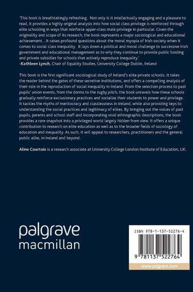This book is the first significant sociological study of Ireland's elite private schools. It takes the reader behind the gates of these secretive institutions, and offers a compelling analysis of their role in the reproduction of social inequality in Ireland. From the selection process to past pupils' union events, from the dorms to the rugby pitch, the book unravels how these schools gradually reinforce exclusionary practices and socialize their students to power and privilege. It tackles the myths of meritocracy and classlessness in Ireland, while also providing keys to understanding the social practices and legitimacy of elites. By bringing out the voices of past pupils, parents and school staff and incorporating vivid ethnographic descriptions, the book provides a rare snapshot into a privileged world largely hidden from view. It offers a unique contribution to research on elite education as well as to the broader fields of sociology of education and inequality. As such, it will appeal to researchers, practitioners and the general public alike, in Ireland and beyond.