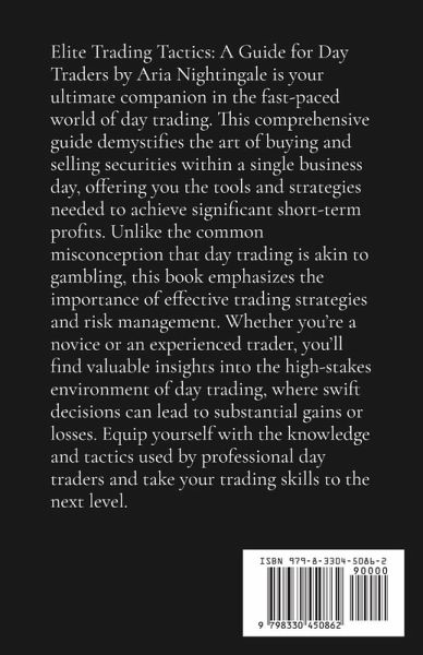 Elite Trading Tactics: A Guide for Day Traders by Aria Nightingale is your ultimate companion in the fast-paced world of day trading. This comprehensive guide demystifies the art of buying and selling securities within a single business day, offering you the tools and strategies needed to achieve significant short-term profits. Unlike the common misconception that day trading is akin to gambling, this book emphasizes the importance of effective trading strategies and risk management. Whether you're a novice or an experienced trader, you'll find valuable insights into the high-stakes environment of day trading, where swift decisions can lead to substantial gains or losses. Equip yourself with the knowledge and tactics used by professional day traders and take your trading skills to the next level.