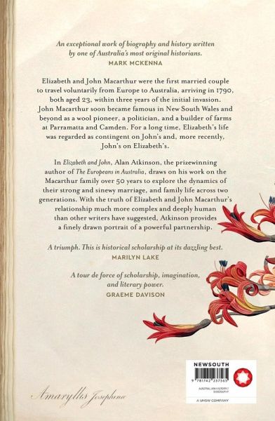 A landmark and revealing joint biography of Elizabeth and John Macarthur, from one of Australia's most respected historians. Arriving in 1790, Elizabeth and John Macarthur, both aged 23, were the first married couple to travel voluntarily from Europe to Australia, within three years of the initial invasion. John Macarthur soon became famous in New South Wales and beyond as a wool pioneer, a politician, and a builder of farms at Parramatta and Camden. For a long time, Elizabeth's life was regarded as contingent on John's and, more recently, John's on Elizabeth's. In Elizabeth and John, Alan Atkinson, prizewinning author of Europeans in Australia, draws on his work on the Macarthur family over the last 50 years to explore the dynamics of a strong and sinewy marriage, and family life over two generations. With the truth of John and Elizabeth Macarthur's relationship much more complicated and more deeply human than other writers have suggested, Atkinson provides a finely drawn portrait of a powerful partnership. 'Elizabeth and John is a truly amazing work of history. A triumph. This is historical scholarship at its dazzling best. Beautifully produced and written, Alan Atkinson's intimate portrait of Elizabeth and John Macarthur's marriage also opens windows on to the wider worlds of 18th century England, the European Enlightenment and early New South Wales during the years of the British invasion and occupation. Attentive to his subjects' inner selves and sensibilities and the imperatives of an imperial and patriarchal order, Atkinson's book is truly a tour de force.' - Marilyn Lake