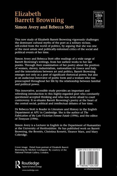 Elizabeth Barrett Browning was one of the most highly-regarded poets of the Victorian age, her stature within literary circles being so great that in 1850 she was seriously considered for the newly-vacated post of Poet Laureate. Yet since her death in 1861 her popularity declined and her work remains relatively neglected with regards to critical analysis. This volume provides an introduction to the poetry and life of Elizabeth Barrett Browning through a biographical survey, study of her poetry, its critical reception and an assessment of her influence on later poets. The authors also examine the complex 'myths' which are associated with her and offer re-readings of her life and work. The book situates Elizabeth Barrett Browning within a broader historical, political and cultural context than has been achieved in other critical studies enabling a better understanding of her poetry.