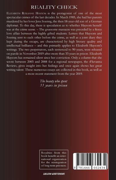 Elizabeth Roxanne Haysom (*1964) is the protagonist of one of the most spectacular crimes of the last decades. In March 1985, she had her parents murdered by her lover Jens Soering, the then 18-year-old son of a German diplomat. To this day, there is speculation as to whether Haysom herself was at the crime scene. - The gruesome massacre was preceded by a fierce love affair between the highly gifted students. Letters that Haysom and Soering sent to each other before the crime, as well as a joint diary they kept during the escape, are characterized by high literary quality and intellectual brilliance - and this primarily applies to Elizabeth Haysom's writings. The two perpetrators, each sentenced to 90 years, were released on parole in November 2019 after more than 33 years in prison. Elizabeth Haysom has remained silent since her conviction. Only a column that she wrote between 2003 and 2008 for a regional newspaper, the ¿Fluvanna Review¿, gives insight into her feelings and once again shows her great writing talent. These numerous essays are collected in this book, as well as a more recent statement from the year 2019.