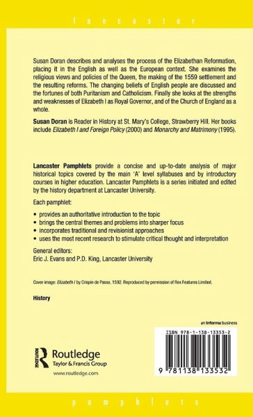 Susan Doran describes and analyses the process of the Elizabethan Reformation, placing it in an English and a European context. She examines the religious views and policies of the Queen, the making of the 1559 settlement and reforms.