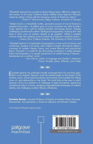 "Catherine Seltzer s Elizabeth Spencer s Complicated Cartographies is a beautifully written, perceptive account of one of America s greatest living writers. Although born in Mississippi, Spencer refused to limit the localities of her many novels, stories and plays to that region, perhaps being most frequently recognized as the author of the located-in-Italy novella, The Light in the Piazza. As Seltzer notes in her conclusion and elsewhere, Spencer s fiction "suggests new cartographies of the southern home, those literal - in its expansion of the borders of southern experience; spiritual - in its exploration of her characters complex responses to a myriad of homes; and artistic - in its growing challenge to the expectations established by her literary mentors." As Seltzer goes on to say, more than any other Southern writer Spencer has a "gift for merging familiar and foreign terrain," thereby challenging conventional southern ideological topographies, implying that "that there is much more of southern identity to be mapped." Seltzer s insightful criticism makes her audience want to reread all of Spencer s masterful oeuvre." - Kimball King, Professor Emeritus, The University of North Carolina and one-time Chair of the Conference of Editors of Learned Journals