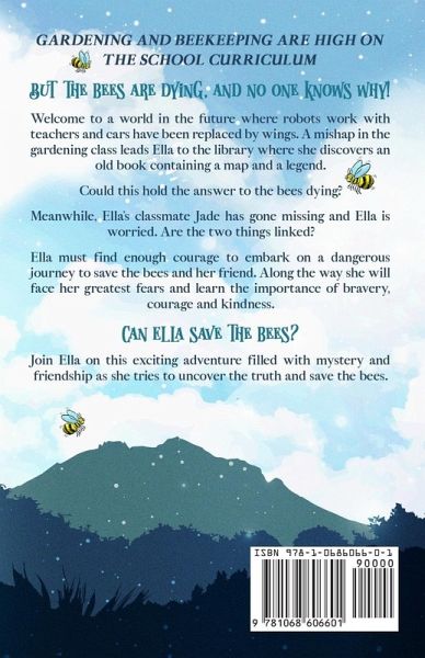 Gardening and beekeeping are high on the school curriculum... ...but the bees are dying,and no one knows why! Welcome to a world in the future where robots work with teachers and cars have been replaced by wings. A mishap in the gardening class leads Ella to the library where she discovers an old book containing a map and a legend. Could this hold the answer to the bees dying? Meanwhile, Ella's classmate Jade has gone missing and Ella is worried. Are the two things linked? Ella must find enough courage to embark on a dangerous journey to save the bees and her friend. Along the way she will face her greatest fears and learn the importance of bravery, courage and kindness. Can Ella save the bees? Join Ella on this exciting adventure filled with mystery and friendship as she tries to uncover the truth and save the bees.