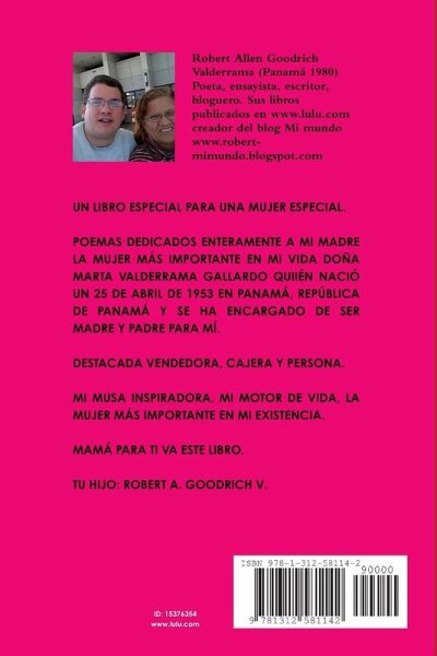 UN LIBRO DE POEMAS DEDICADO EXCLUSIVAMENTE A MI MADRE DOÑA MARTA VALDERRAMA GALLARDO CON TODO EL CARIÑO Y EL RESPETO QUE LA MISMA MERECE.