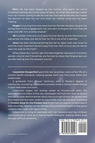 Ella's life has been shaped by the mother who spent her entire childhood abusing her in the name of Jesus. So when she receives a letter from her mother asking to see her one last time before she dies, Ella makes the decision to take her son and show her mother what she has been missing. Megan is running from the news that her fiancée has been lying to her during their entire engagement. Can she learn to forgive the man that she loves and offer him another chance? Jill is a foster child who is trying to find her family. As she hitchhikes her way across the state, she learns that her life is not what it seemed. Anna has been doing everything she can to reject God, ever since he took the most important person away from her. Will a trip to see her family open her eyes to the truth? When these four women get stranded together because of a blizzard, secrets unwind and friendship is formed to show that forgiveness can provide healing over the deepest wounds.