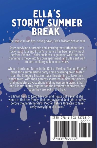 The sequel to the best selling novel, Ella's Twisted Senior Year After surviving a tornado and learning the truth about their rocky past, Ella and Ethan's romance has been pretty much perfect. Ethan's T-shirt business is going so well that he's planning to move into his own apartment, and Ella can't wait to start culinary school next week. When a hurricane forms in the Gulf of Mexico, Ella and Ethan's plans for a summertime party come crashing down faster than the Category 5 storm that's threatening to take their entire town. With their parents scattered in different places, and mandatory evacuations making everyone crazy, Ethan and Ella try to stay together on the crammed roadways, but soon they are lost in the fray. Ella will have to keep her cool and figure out a plan if she wants to find her family, find her boyfriend, and get to safety before the harsh hands of Mother Nature threaten to take away everything she loves.