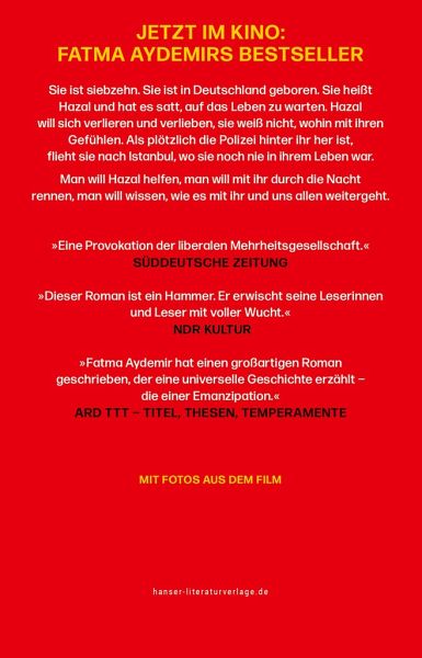 Sie ist siebzehn. Sie ist in Berlin geboren. Sie heißt Hazal Akgündüz. Eigentlich könnte aus ihr eine gewöhnliche Erwachsene werden. Nur dass ihre aus der Türkei eingewanderten Eltern sich in Deutschland fremd fühlen. Und dass Hazal auf ihrer Suche nach Heimat fatale Fehler begeht. Erst ist es nur ein geklauter Lippenstift. Dann stumpfe Gewalt. Als die Polizei hinter ihr her ist, flieht Hazal nach Istanbul, wo sie noch nie zuvor war. Warmherzig und wild erzählt Fatma Aydemir von den vielen Menschen, die zwischen den Kulturen und Nationen leben, und von ihrer Suche nach einem Platz in der Welt. Man will Hazal helfen, man will mit ihr durch die Nacht rennen, man will wissen, wie es mit ihr und mit uns allen weitergeht.