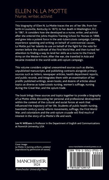 Using unexamined sources, including diaries and unpublished manuscripts, this biography traces the life and work of nurse, writer, and activist Ellen N. La Motte (1873-1961), examining how she developed as a professional in the early twentieth century.